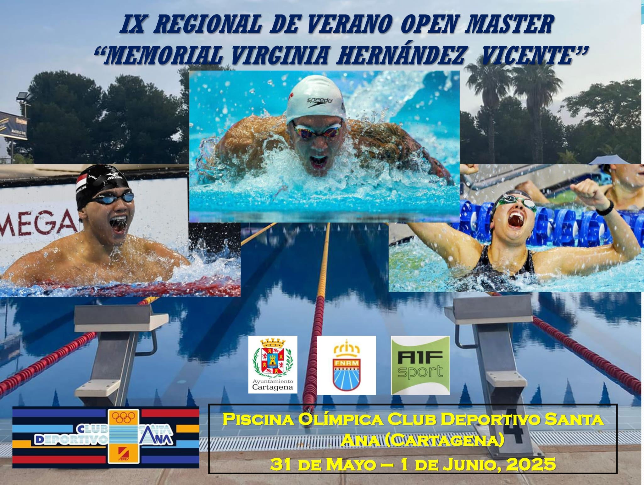 2025-05-31 IX REGIONAL OPEN MÁSTER DE VERANO «MEMORIAL VIRGINIA HERNÁNDEZ VICENTE» IX REGIONAL OPEN MÁSTER DE VERANO «MEMORIAL VIRGINIA HERNÁNDEZ VICENTE» mayo 31 @ 10:00 am - junio 1 @ 12:00 pm IX REGIONAL OPEN MÁSTER DE VERANO «MEMORIAL VIRGINIA HERNÁNDEZ VICENTE» Normativa |HORARIO | Listado Inscritos |Series | SUMARIO FINAL| Resultados Online | RESULTADOS OFICIALES / Clasificación por Clubes/ Ubicación Cd. Santa Ana (Piscina) Horarios de Calentamiento libre en vaso de 50 metros: Sesiones 1 y 3 (mañana): de 8:30 a 9:45 Sesión 2 (tarde): de 15:40 a 16:45 Las calles 1 y […]